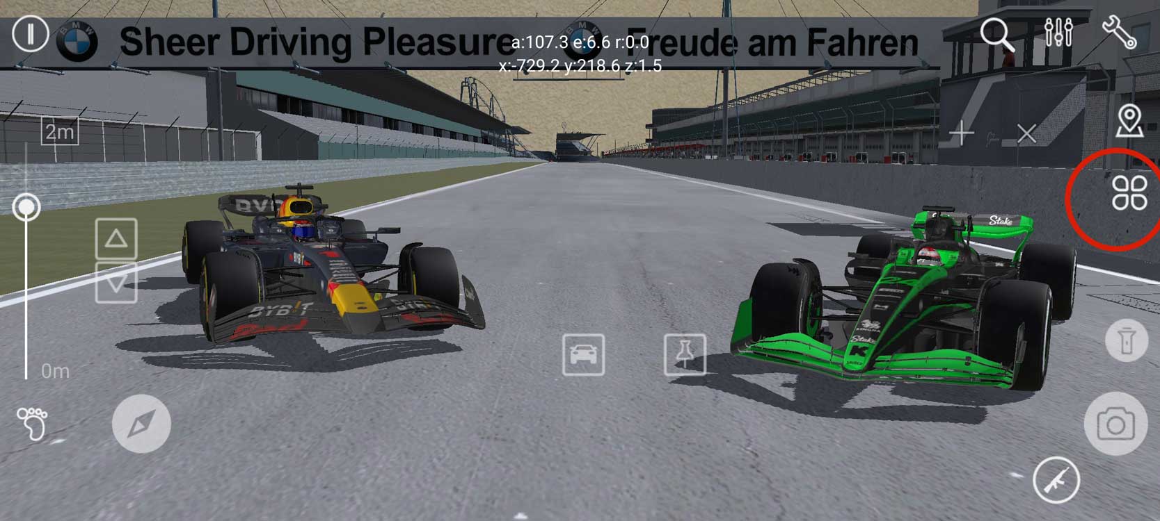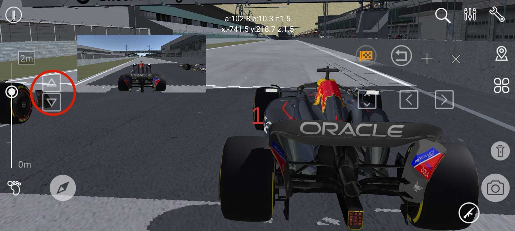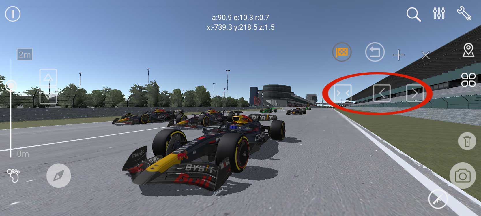 选择驾驶视角观看比赛时,可以双击放大驾驶小窗,然后使用右侧的视角切换按钮,在不同的参加竞赛模型之间,以及同一模型的不同视角间进行切换,充分地观赏比赛。